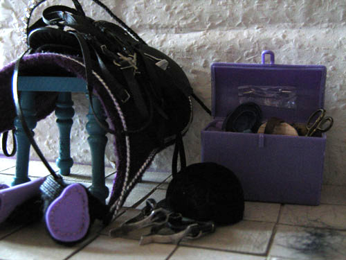 Auch Modelltiere und Modellmenschen brauchen eine Unterkunft und so findet man bei nicht wenigen Modellpferdesammlern, maßstabsgetreue Puppenstuben uns Stallanlagen. Dabei sind es oftmals nur Attrappen, die für die Modellphotos als Kulisse dienen, aber auch richtige Modellbauten, wie Puppenhäuser. Es gibt auch andere Fortbewegungsmittel, wie Fahrräder, Autos oder Boote, die die die Sammlung vieler Modellpferdefreunde bereichern. Dazu kommen jede Menge Zubehörteile wie Sättel, Trensen, Decken, Heuballen, Arbeitsgeräte und vieles mehr. Teilweise werden die Modellteile von den Sammlern in stundenlanger Fitzel-Arbeit selbst hergestellt, wobei wahre Kunstwerke entstehen können.